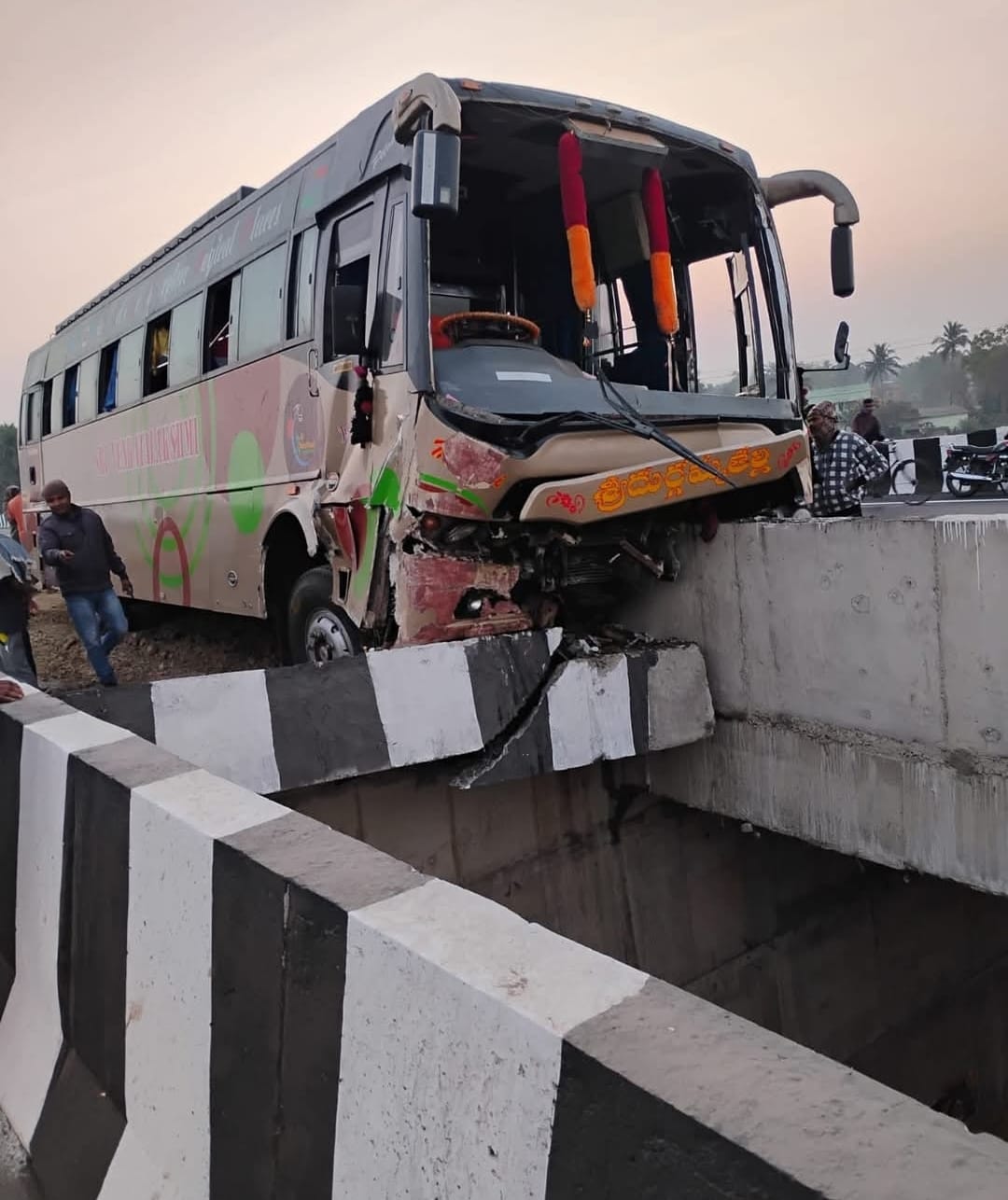 ବସଟି ଭାରସାମ୍ୟ ହରାଇ ବ୍ରିଜ ପାଚେରୀକୁ ଭାଙ୍ଗି ଦେଇଛି । ଏଥିରୁ ୧୦ ଜଣ ଯାତ୍ରୀ ଗୁରୁତର ଆହତ ହୋଇଥିବା ବେଳେ ଜଣେ ଶ୍ରଦ୍ଧାଳୁଙ୍କ ମୃତ୍ୟୁ ଘଟିଛି । ପୁଲିସ ଘଟଣା ସ୍ଥଳରେ ପହଞ୍ଚି ବସକୁ ଉଦ୍ଧାର କରିଛି ।
