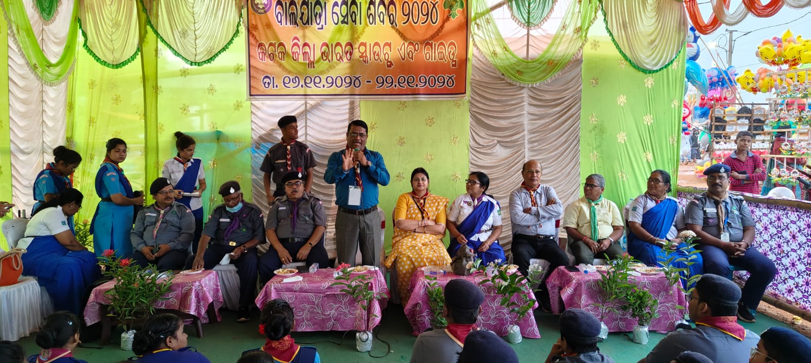 କଟକ (ଭିଓଭି): ଆଜି ସଂଧ୍ୟାରେ କଟକ ଜିଲ୍ଲା ଭାରତ ସ୍କାଉଟ୍ ଏବଂ ଗାଇଡ ତରଫରୁ ବାଲିଯାତ୍ରା ସେବା ଶିବିର ଉଦଯାପନ ହୋଇଯାଇଛି। ଏହି ଉଦଯାପନୀ ଉତ୍ସବରେ ମୁଖ୍ୟ ଅତିଥି ଭାବେ ଜିଲ୍ଲା ଶିକ୍ଷା ଅଧିକାରୀ ଡକ୍ଟର ସନ୍ତୋଷ କୁମାର ରାଉତ, ସମ୍ମାନିତ ଅତିଥିଭାବେ ଅତିରିକ୍ତ ଜିଲ୍ଲା ଶିକ୍ଷା ଅଧିକାରୀ ଶ୍ରୀମତୀ ସୋନାମିକା ରାୟ ପିଲାମାନଙ୍କର ଉଜ୍ଜଳ ଭବିଷ୍ୟତ କାମନା କରିଥିଲେ। ଏହି ସେବା ଶିବିର ଗତ ୧୬-୧୧-୨୦୨୪ ରୁ ଆରମ୍ଭ କରି ୨୨-୧୧-୨୦୨୪ ପର୍ଯ୍ୟନ୍ତ ସ୍କାଉଟ୍, ଗାଇଡ, ରୋଭର୍, ରେଞ୍ଜର, ସ୍କାଉଟ୍ ମାଷ୍ଟର ଏଵଂ ଗାଇଡ କ୍ୟାପଟେନ ମାନେ ବିଭିନ୍ନ ସେବା, ଯେପରି ସ୍ୱଚ୍ଛ ଭାରତ ସଫେଇ କାର୍ଯ୍ୟ, ଟ୍ରାଫିକ ନିୟନ୍ତ୍ରଣ କାର୍ଯ୍ୟରେ ପୋଲିସ କର୍ମଚାରୀଙ୍କୁ ସହାୟତା କରିବା, ସୂଚନା କେନ୍ଦ୍ରରେ ହଜିଲା ଲୋକଙ୍କୁ ଖୋଯିବା ଭଳି ଅନେକ ସେବା କରିଥିଲେ । କଟକ ଜିଲ୍ଲା ଶାରୀରିକ ଶିକ୍ଷା ଅଧିକାରୀ ତଥା ସମ୍ପାଦିକା ସୁଶ୍ରୀ ସୌଦାମିନୀ ଦାସ ମହୋଦୟା ସେବା ଶିବିରର ସଫଳତା କାମନା କରିଥିଲେ । ଜିଲ୍ଲା ସ୍କାଉଟ୍ ସଂଗଠକ ଶ୍ରୀଯୁକ୍ତ ପ୍ରଦୀପ୍ତ କୁମାର ମହାନ୍ତି ,ଜିଲ୍ଲା ସ୍କାଉଟ୍ କମିଶନର ଶ୍ରୀ ଆଶୋକ କୁମାର ମହାପାତ୍ର, ଜିଲ୍ଲା ସ୍କାଉଟ୍ ସଂଯୋଜକ ଶ୍ରୀ ସନ୍ତୋଷ କୁମାର ତ୍ରିପାଠୀ, ଜିଲ୍ଲା ଗାଇଡର୍ ଶ୍ରୀମତୀ ରଞ୍ଜିତା ପ୍ରଧାନ, ଜିଲ୍ଲା ସ୍କାଉଟର୍ ଶ୍ରୀଯୁକ୍ତ ଜିତେନ୍ ରାଉତ, ଜିଲ୍ଲା ଗାଇଡ ସଂଗଠିକା ଶ୍ରୀମତୀ ସୌଦାମିନୀ ଖାଡେଙ୍ଗା, ଉପସ୍ଥିତ ଥିଲେ । ଯୁଗ୍ମ ସମ୍ପାଦକ ଅକ୍ଷୟ ଷଡ଼ଙ୍ଗୀ ସଭା ପରିଚାଳନା କରିଥିବା ବେଳେ, ଜିଲ୍ଲା ଗାଇଡ କମିଶନର ଶ୍ରୀମତୀ ନିରୁପମା ମଲ୍ଲିକ ଧନ୍ୟବାଦ୍ ଅର୍ପଣ କରିଥିଲେ । ସ୍କାଉଟ୍ ମାଷ୍ଟର ମାନସ ରଞ୍ଜନ ପରିଡ଼ା, ଦିଲ୍ଲୀପ କୁମାର ରାଉତ, ଜ୍ଞାନ ରଞ୍ଜନ ଦାସ,ପ୍ରମୁଖ ସେବା ଶିବିର ପରିଚାଳନା କରିଥିଲେ ।