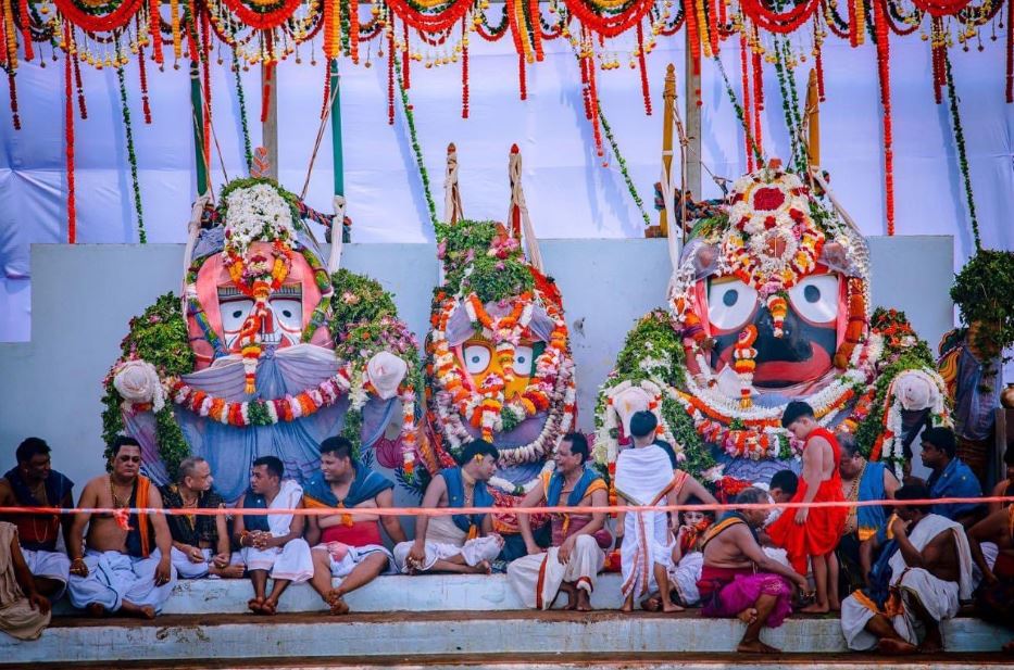 ପୁରୀ : ଆଜି ପବିତ୍ର ଦେବସ୍ନାନ ପୂର୍ଣ୍ଣିମା । ଆଜି ଶ୍ରୀଜିଉଙ୍କ ସ୍ନାନଯାତ୍ରା ପାଇଁ ସମସ୍ତେ ଚଳଚଞ୍ଚଳ । ଭକ୍ତିମୟ ପରିବେଶ ଭିତରେ ସମସ୍ତଙ୍କୁ ଦର୍ଶନ ଦେଉଛନ୍ତି ମହାବାହୁ । ଲୋକାରଣ୍ୟ ଶ୍ରୀକ୍ଷେତ୍ର । ୧୦୮ ଗରା ସୁବାସିତ ଜଳରେ ସ୍ନାନ କରିବେ ଚତୁର୍ଦ୍ଧାମୂର୍ତ୍ତି ।ତେବେ ଏହି ଜଳ ଗୋଟିଏ ବର୍ଷ ପୂର୍ବରୁ ଗଚ୍ଛିତ ହୋଇ ରଖାଯାଇଥାଏ । କୁହାଯାଏ ଏହି ଜଳ ଯେଉଁ ସ୍ଥାନରୁ ଆସିଥାଏ ତାହାର ନାମ ‘ସୁନା କୂଅ’ । ତେବେ ଏହିଠାରୁ ହିଁ ଠାକୁରଙ୍କ ଲାଗି ପାଣି ଯାଇଥାଏ । ପ୍ରଭୁ ଶ୍ରୀଜଗନ୍ନାଥଙ୍କୁ ୩୫ ଗରା ସୁବାସିତ ଜଳ , ପ୍ରଭୁ ବଳଭଦ୍ରଙ୍କୁ ୩୩ ଗରା ଏବଂ ଦେବୀ ସୁଭଦ୍ରାଙ୍କୁ ୨୨ ଗରା ଏବଂ ଚକ୍ରରାଜ ପ୍ରଭୁ ଶ୍ରୀ ସୁଦର୍ଶନଙ୍କୁ ୧୮ ଗରା ସୁବାସିତ ଜଳରେ ସ୍ନାନ କରାଯାଏ ଏବଂ ଏହି ଦିନ ଗଜାନନ ବେଶରେ ପ୍ରଭୁ ଭକ୍ତଙ୍କୁ ଦର୍ଶନ ଦେଇଥାଆନ୍ତି ।