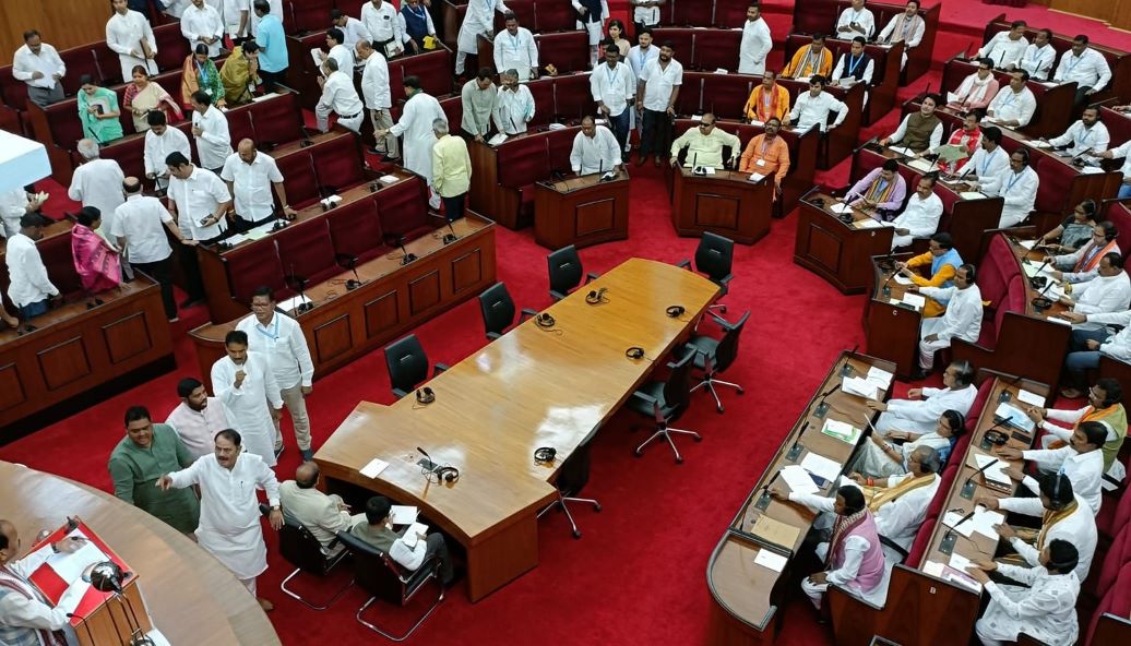 ଭୁବନେଶ୍ବର: ଧିରେ ଧିରେ ରାଜ୍ୟପାଳଙ୍କ ପୁଅ ଓଡିଆ କର୍ମଚାରୀଙ୍କୁ ମାଡ ମାରିବା ଘଟଣା ନୂଆ ମୋଡ ନେବାରେ ଲାଗିଛି। ଆଜି ଏହି ପ୍ରସଂଗକୁ ନେଇ ବିଧାନସଭାରେ ହଟ୍ଟଗୋଳ ହୋଇଛି। ଏପରିକି ବିଜେଡି ବିଧାୟକ ବାଚସ୍ପତିଙ୍କ ଟେବୁଲ ଉପରେ ଚଢି ତାଙ୍କ ମାଇକ ଭାଙ୍ଗି ଦେଇଛନ୍ତି। ତୁରନ୍ତ ରାଜ୍ୟପାଳ ପୁଅଙ୍କ ବିରୋଧରେ କାର୍ଯ୍ୟାନୁଷ୍ଠନ ଗ୍ରହଣ କରାଯାଉ ବୋଲି ଗୃହରେ ବିଜେଡି ଓ କଂଗ୍ରେସ ସଦସ୍ୟମାନେ ଦାବୀ କରିଛନ୍ତି। ଆଜ ସକାଳେ ଗୃହ କାର୍ଯ୍ୟ ଆରମ୍ଭ ହେବା ମାତ୍ରେ ବିରୋଧୀ ବିଜେଡି ଓ କଂଗ୍ରେସ ସଦସ୍ୟ ନିଜ ଆସନ ପାଖରେ ଛିଡା ହୋଇ ପ୍ରତିବାଦ କରିଥିଲେ। ଏହାପରେ ସମସ୍ତେ ଗୃହ ମଧ୍ୟ ଭାଗକୁ ଆସି ରାଜ୍ୟପାଳ ପୁଅଙ୍କ ବିରୋଧରେ କାର୍ଯ୍ୟାନୁଷ୍ଠ କେବେ ବୋଲି ନାରାବାଜି ଦେଇଥିଲେ। ଫଳରେ ବାଚସ୍ପତି ଗୃହକାର୍ଯ୍ୟକୁ ଅପରାହ୍ନ 4ଟା ପର୍ଯ୍ୟନ୍ତ ମୁଲତବି ଘୋଷଣା କରିଥିଲେ। ଏହାପରେ ପୁଣି ଗୃହ କାର୍ଯ୍ୟ ଆରମ୍ଭ ହେବା ମାତ୍ରେ ବିରୋଧୀ ବିଜେଡି ଓ କଂଗ୍ରେସ ସଦସ୍ୟମାନେ ସେହିପରି ହଟ୍ଟଗୋଳ କରିଥିଲେ। ଏପରିକି ବିଜେଡି ବିଧାୟକ ଧ୍ରୁବ ସାହୁ ବାଚସ୍ପତିଙ୍କ ଟେବୁଲ ଉପରକୁ ଚଢି ତାଙ୍କ ମାଇକ ଭାଙ୍ଗି ଦେଇଥିଲେ। ଏପରି ପରିସ୍ଥିତିରେ ବାଚସ୍ପତି ଆସନ୍ତାକାଲି ପର୍ଯ୍ୟନ୍ତ ଗୃହ କାର୍ଯ୍ୟକୁ ମୁଲତବି ଘୋଷଣା କରିଛନ୍ତି।