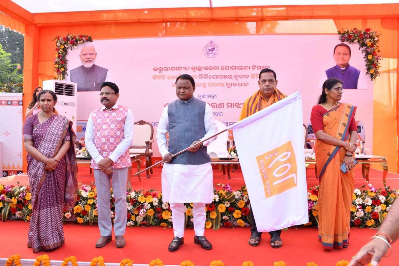 ଭୁବନେଶ୍ୱର: ରାଜ୍ୟର ସ୍ୱାସ୍ଥ୍ୟ ସେବାରେ ଆଉ ଏକ ନୂତନ ଅଧ୍ୟାୟ ଯୋଡି ଆଜି ମୁଖ୍ୟମନ୍ତ୍ରୀ ମୋହନ ଚରଣ ମାଝୀ କଳିଙ୍ଗ ଷ୍ଟାଡିୟମ ଠାରେ ପ୍ରଥମ ପର୍ଯ୍ୟାୟରେ ୧୫୦ ଗୋଟି ଆମ୍ବୁଲାନ୍ସର ଲୋକାର୍ପଣ କରିଛନ୍ତି।