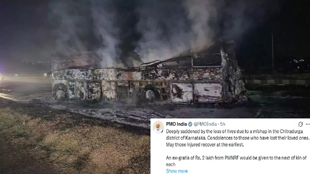 ଚିତ୍ରଦୁର୍ଗ ବସ୍ ଦୁର୍ଘଟଣା : ମୃତକ ଏବଂ ଆହତଙ୍କ ପରିବାରକୁ ପ୍ରଧାନମନ୍ତ୍ରୀଙ୍କ ସହାୟତା ରାଶି ଘୋଷଣା
