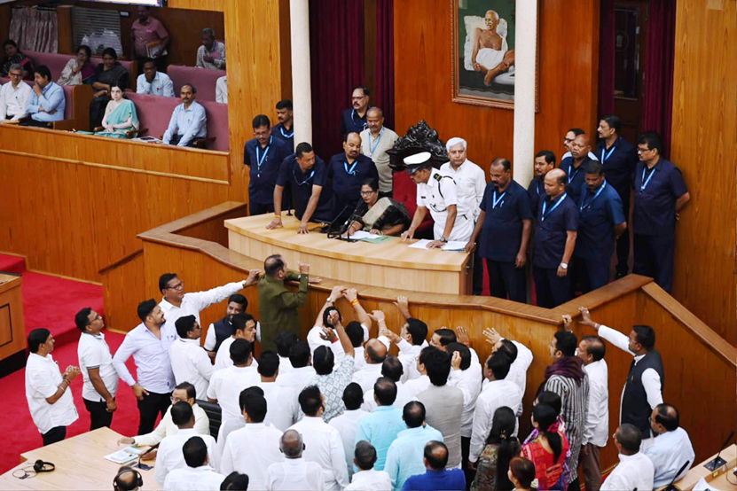 ଭୁବନେଶ୍ୱର: ବିରୋଧୀ ବିଜେଡି ଓ କଂଗ୍ରେସ ଭିନ୍ନ ଭିନ୍ନ ପ୍ରସଙ୍ଗ ନେଇ ହଟ୍ଟଗୋଳ କରିବା ଯୋଗୁଁ ଗୃହ ଅଚଳ ହୋଇଛି। ଫଳରେ ପୂର୍ବାହ୍ନ ବୈଠକ ଦୁଇ ମିନିଟ୍ ବି ଚାଲିପାରନାହିଁ। ସପ୍ତଦଶ ଓଡ଼ିଶା ବିଧାନସଭାର ତୃତୀୟ ତଥା ବଜେଟ୍ ଅଧିବେଶନର ଶୁକ୍ରବାର ଥିଲା ଦ୍ୱିତୀୟ ଦିନ। ଧାର୍ଯ୍ୟ ସାଢ଼େ ୧୦ରେ ବାଚସ୍ପତି ସୁରମା ପାଢ଼ୀ ଗୃହ ପରିଚାଳନା ପାଇଁ ଆସନକୁ ଆସିବା କ୍ଷଣି ପ୍ରଥମେ କଂଗ୍ରେସ ସଭ୍ୟମାନେ ଗୃହ ମଝିକୁ ଆସି ରାଜ୍ୟର ବିପର୍ଯ୍ୟସ୍ତ ଆଇନଶୃଙ୍ଖଳା ଉପରେ ଆଲୋଚନା ଦାବିକରି ହଟ୍ଟଗୋଳ କରିଥିଲେ। ଗୃହ ସ୍ଥିତି ଅଶାନ୍ତ ଥିବାବେଳେ ବିଜେଡି ସଦସ୍ୟମାନେ ଚାଷୀମାରଣ ନୀତିକୁ ନେଇ ନାରାବାଜି କରିଛନ୍ତି। ସେମାନେ ବାଚସ୍ପତିଙ୍କ ପୋଡିଅମ୍ ସମ୍ମୁଖରେ ସରକାରୀ ବିରୋଧୀ ନାରାବାଜି ଦେଇ ହୋହାଲ୍ଲା କରିଥିଲେ। ସେମାନେ ଚାଷ, ଚାଷୀ ସମସ୍ୟା ଓ କଟ୍ନି-ଛଟ୍ନୀ ପ୍ରସଙ୍ଗ ଉଠାଇଥିଲେ। ଉଭୟ ଦଳର ସଭ୍ୟଙ୍କ ହଙ୍ଗମା ଯୋଗୁଁ ଗୃହ ଚଳାଇବା ସମ୍ଭବ ହୋଇନଥିଲା। ବାଚସ୍ପତି ଶ୍ରୀମତୀ ପାଢ଼ୀ ବିରୋଧୀ ସଭ୍ୟଙ୍କୁ ବାରମ୍ବାର ନିଜ ଆସନକୁ ଯିବାକୁ ଅନୁରୋଧ କରିଥିଲେ। ହେଲେ ସେମାନେ ତାହାକୁ ଅଗ୍ରାହ୍ୟ କରିଥିଲେ। ଏତିକି ବେଳେ ଗଣଶିକ୍ଷା ମନ୍ତ୍ରୀ ନିତ୍ୟାନନ୍ଦ ଗଣ୍ଡ ନିଜ ବିଭାଗ ଉପରେ ଉତ୍ତର ରଖୁଥିଲେ ହେଁ କିଛି ଶୁଣାଯାଇନଥିଲା। ଗୃହରେ ଅସ୍ୱାଭାବିକ ସ୍ଥିତି କାରଣରୁ ବାଚସ୍ୱତି ବାଧ୍ୟହୋଇ ଗୃହକୁ ୧୦ଟା୨ରୁ ବାରଟା ଯାଏ ମୁଲତବୀ କରିଥିଲେ। ପୁଣି ଗୃହ ଆରମ୍ଭହେବା ପରେ ବିରୋଧୀ ଅନୁରୂପ ଭାବେ ହଟ୍ଟଗୋଳ କରିଥିଲେ। ବାଚସ୍ପତି ସେଥିପାଇଁ ଗୃହକୁ ପୁଣି ଅପରାହ୍ଣ ୪ଟା ଯାଏ ମୁଲତବୀ ଘୋଷଣା କରିଥିଲେ। ଏଥିପାଇଁ ପ୍ରଶ୍ନକାଳ, ଶୂନ୍ୟକାଳ ଓ ଅନ୍ୟାନ୍ୟ କାର୍ଯ୍ୟ ହୋଇପାରିନାହିଁ। ଏହାକୁ ନେଇ ଗୃହ ଭିତରେ ଓ ବାହାରେ ରାଜନୀତି ସରଗରମ ହୋଇଥିଲା। ଗୃହ ବାହାରେ ବିରୋଧୀଙ୍କୁ ଟାର୍ଗେଟ୍ କରିବିଜେପି ବିଧାୟକ ଇରାଶିଷ ଆଚାର୍ଯ୍ୟ କହିଛନ୍ତି, ପ୍ରସଙ୍ଗ ନଥିବାରୁ ଅପ୍ରସଙ୍ଗକୁ ପ୍ରସଙ୍ଗ କରୁଛନ୍ତି ବିରୋଧୀ। ଗଣତନ୍ତ୍ରକୁ ହତ୍ୟା କରୁଛନ୍ତି, ଯାହା ଅତ୍ୟନ୍ତ ନିନ୍ଦନୀୟ। କଂଗ୍ରେସ ଯେଉଁ ମୁଲତବି ପ୍ରସ୍ତାବ ଆଣିବାକୁ ଚାହୁଁଛି, ତାହା ଉପରେ ଆଲୋଚନା ପାଇଁ ସରକାର ପ୍ରସ୍ତୁତ ଅଛନ୍ତି। ଏଥିପାଇଁ ପ୍ରଶ୍ନକାଳରେ ବିକ୍ଷୋଭର କୌଣସି ଆବଶ୍ୟକତା ନଥିଲା। ଉଲ୍ଲେଖନୀୟ, ଫେବୃଆରୀ ୧୩ରୁ ଆରମ୍ଭ ହୋଇଛି ବିଧାନସଭାର ବଜେଟ୍ ଅଧିବେଶନ ୧୭ରେ ୨୦୨୫-୨୬ ଆର୍ôଥକ ବର୍ଷର ବଜେଟ୍ ଉପସ୍ଥାପନ ହେବ। ଏହି ବଜେଟ୍ ଅଧିବେଶନ ମୋଟ ଦୁଇଟି ପର୍ଯ୍ୟାୟରେ ଚାଲିବାକୁ ଥିବାବେଳେ ଏଥିରେ ୨୮ଟି କାର୍ଯ୍ୟ ଦିବସ ରହିଛି। ଫେବୃଆରୀ ୧୩ରୁ ୨୧ତାରିଖ ପର୍ଯ୍ୟନ୍ତ ପ୍ରଥମ ପର୍ଯ୍ୟାୟ ଏବଂ ମାର୍ଚ୍ଚ ୭ରୁ ଏପ୍ରିଲ୍ ୫ ତାରିଖ ପର୍ଯ୍ୟନ୍ତ ଦ୍ୱିତୀୟ ପର୍ଯ୍ୟାୟ ଅଧିବେଶନ ହେବ।