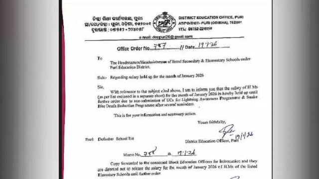 ପୁରୀ: ଆକ୍ସନ ମୋଡରେ ଜିଲ୍ଲା ଶିକ୍ଷାଧିକାରୀ । ପୁରୀ ଜିଲ୍ଲାର ୭୨ ଜଣ ପ୍ରଧାନଶିକ୍ଷକ ଓ ଶିକ୍ଷୟତ୍ରୀଙ୍କ ଏକ ମାସର ଦରମା ବନ୍ଦ କରିବାକୁ ଚିଠି ଜରିଆରେ ନିର୍ଦ୍ଦେଶ ଦିଆଯାଇଛି । ବର୍ଷା ସମୟରେ ବଜ୍ରପାତ ହେଲେ ସେଥିରୁ କିଭଳି ସୁରକ୍ଷିତ ରହିପାରିବେ ଏବଂ ସାପ କାମୁଡିଲେ ତୁରନ୍ତ କିଭଳି ପ୍ରାଥମିକ ଚିକିତ୍ସା ହୋଇପାରିବ ସେନେଇ ଜିଲ୍ଲାର ସମସ୍ତ ସ୍କୁଲରେ ସଚେତନତା କାର୍ଯ୍ୟକ୍ରମ ଜରିଆରେ ଛାତ୍ରଛାତ୍ରୀ ମାନଙ୍କୁ ଅବଗତ କରିବା ଲାଗି ନିର୍ଦେଶନାମା ଜାରି କରାଯାଇଥିଲା ।