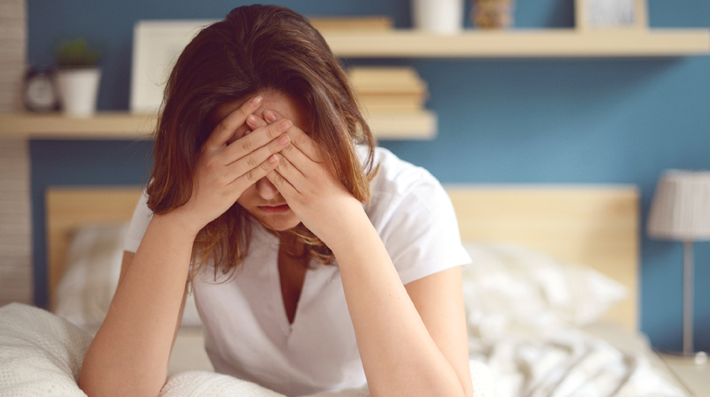 Unhappy girl in a bedroom