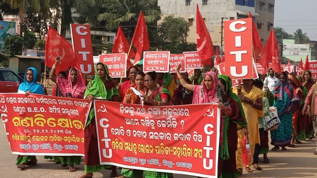 ରଣପୁର (ଭିଓଭି) : ଆଜି ସି.ଆଇ.ଟି.ୟୁ ନେତୃତ୍ୱରେ ଶତାଧିକ ପାଚିକା ଓ ସହାୟିକା ଙ୍କ ଏକ ଶୋଭାଯାତ୍ରା ରେ ରଣପୁର ପଞ୍ଚୁ ଦୋଳ ପଡ଼ିଆ ରଘୁଦିବାକର ଶହୀଦ ମଣ୍ଡପ ଠାରୁ ବାହାରି ବିଭିନ୍ନ ନାରାବାଜି ଦେଇ ରଣପୁର ବଜାର ପରିକ୍ରମା କରି ରଣପୁର ବ୍ଳକ ମଣ୍ଡଳ ଶିକ୍ଷାଧିକାରୀ ଙ୍କ କାର୍ଯ୍ୟାଳୟ ସମ୍ମୁଖରେ ଗଣ ବିକ୍ଷୋଭ କରିଥିଲେ। ଶ୍ରମିକ ନେତା ଭିକାରୀ ଚରଣ ସାହୁଙ୍କ ସଭାପତିତ୍ବ ରେ ଅନୁଷ୍ଠିତ ବିକ୍ଷୋଭ ସମାବେଶ ରେ ବକ୍ତା ମାନେ କେନ୍ଦ୍ର ର ମୋଦୀ ସରକାର ଙ୍କ ଶ୍ରମିକ ମହାରଣା ନୀତି ଓ ଜନ ମାରଣା ନୀତିକୁ ତୀବ୍ର ସମାଲୋଚନା କରିଥିଲେ। ପାଚିକା ଓ ସହାୟିକା ମାନେ ଯେତେବେଳେ ନିୟମିତ ହେବାକୁ ଦାବୀ କରୁଛନ୍ତି ଠିକ୍ ସେତିକି ବେଳେ କେନ୍ଦ୍ର ମୋଦୀ ସରକାର ଓ ରାଜ୍ୟ ନବୀନ ସରକାର ଶ୍ରମିକ ବିରୋଧୀ ନିଷ୍ପତି ମାନ ଗ୍ରହଣ କରି ଚାଲିଛନ୍ତି।