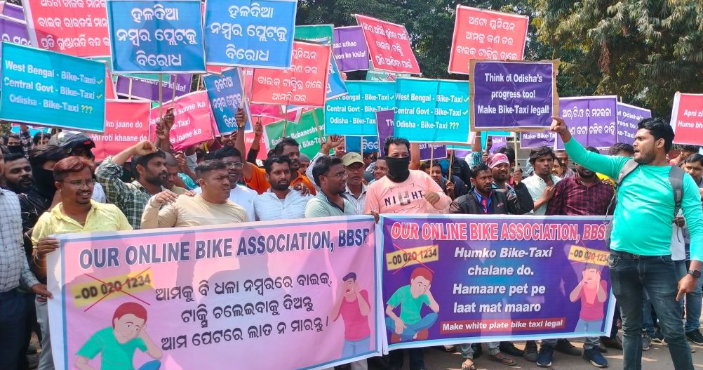 ହଳଦିଆ ନମ୍ବର ପ୍ଲେଟକୁ ବିରୋଧ କରି ଓଡ଼ିଶା ବାଇକ୍ ଟ୍ୟାକ୍ସି ଚାଳକଙ୍କ ଧର୍ମଘଟ