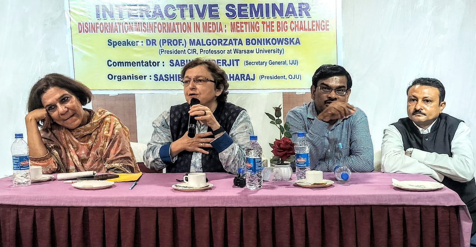 ଇଣ୍ଟରନେସନାଲ ରିଲେସନ ସେଣ୍ଟରର ସଭାପତି ତଥା ୱାର୍ସ ବିଶ୍ୱବିଦ୍ୟାଳୟ, ପୋଲାଣ୍ଡ ର ପ୍ରଫେସର ଡକ୍ଟର ମାଲଗୋରଜାଟା ବୋନିକୋସ୍କି ମୁଖ୍ୟ ଅତିଥି ଭାବରେ ଯୋଗଦେଇ ପାରମ୍ପରିକ ଗଣମାଧ୍ୟମ ହେଉଛି ଅପପ୍ରଚାର ଏବଂ ଅଗଣତାନ୍ତ୍ରିକ ସମାଜ ବିରୁଦ୍ଧରେ ଲଢ଼ିବାର ଚାବିକାଠି ବୋଲି କହିଥିଲେ. ରାଜ୍ୟର ବିଭିନ୍ନ ପ୍ରମୁଖ ସାମ୍ବାଦିକ ଏହି ଆଲୋଚନାଚକ୍ରରେ ଅଂଶଗ୍ରହଣ କରି ଭାରତୀୟ ଗଣତନ୍ତ୍ର ଏବଂ ଗଣ ମାଧ୍ୟମ ନେଇ ସେମାନଙ୍କର ମତାମତ ପ୍ରଦାନ କରିଥିଲେ. ଓଡିଶା ସାମ୍ବାଦିକ ସଙ୍ଘର ସଭାପତି ଶଶି ଭୂଷଣ ପ୍ରହରାଜ ରାଜ୍ୟରେ ଗଣମାଧ୍ୟମ ଏବଂ ସାମ୍ବାଦିକ ମାନେ କିଭଳି ଭୁଲ ତଥ୍ୟ ଠାରୁ ଦୁରେଇ ପରୀକ୍ଷିତ ତଥା ପ୍ରକୃତ ତଥ୍ୟ ଲୋକଙ୍କ ନିକଟକୁ ପହଞ୍ଚାଇବେ ସେଥିପାଇଁ ସଂଘ ଏହି ଭଳି ଅନ୍ତର୍ଜାତୀୟ ସେମିନାର ଆୟୋଜନ କରିଥିବା କହିଥିଲେ. ଇଣ୍ଡିଆନ ଯର୍ଣ୍ଣାଲିଷ୍ଟ ୟୁନିୟନ ଏବଂ ଇଣ୍ଟରନେସନାଲ ଫେଡେରେସନ ଅଫ ଯର୍ଣ୍ଣାଲିଷ୍ଟର ଉପାଧ୍ୟକ୍ଷ ସବିନା ଇନ୍ଦ୍ରଜିତ ଅପପ୍ରଚାର ଏବଂ ଭୁଲ ସୂଚନା, ନକଲି ଖବର, ଭୁଲ ତଥ୍ୟ ବିଶ୍ୱସ୍ତରୀୟ ଘଟଣା ଏବଂ ନୈତିକ ସାମ୍ବାଦିକତା ସହିତ ଏହାର ମୁକାବିଲା କରାଯିବା ଉଚିତ ବୋଲି କହିଥିଲେ. ଏହି ଅବସର ରେ ଓଡ଼ିଶା ସାମ୍ବାଦିକ ସଂଘର ସ୍ମରଣିକା ଅତିଥି ମାନଙ୍କ ଦ୍ୱାରା ଉନ୍ମଚିତ ହୋଇଥିଲା. ସାମ୍ବାଦିକ ଶ୍ରୀକାନ୍ତ ରାଉତ ସେମିନାର ପରିଚାଳନା କରିଥିବା ବେଳେ, ଓଡିଶା ସାମ୍ବାଦିକ ସଙ୍ଘର ରାଜ୍ୟ ଉପସଭାପତି ଦୀପକ କୁମାର ନାୟକ, ରାଜ୍ୟ ସାଧାରଣ ସମ୍ପାଦକ ଦୁର୍ଯୋଧନ ମହାରଣା, ରାଜ୍ୟ ସମ୍ପାଦକ ରାଜକିଶୋର ତ୍ରିପାଠି, ଭୁବନେଶ୍ୱର ସଭାପତି ଅଶୋକ କୁମାର ସାହୁ ପ୍ରମୁଖ କାର୍ଯ୍ୟକ୍ରମ ପରିଚାଳନାରେ ସହଯୋଗ କରିଥିଲେ.