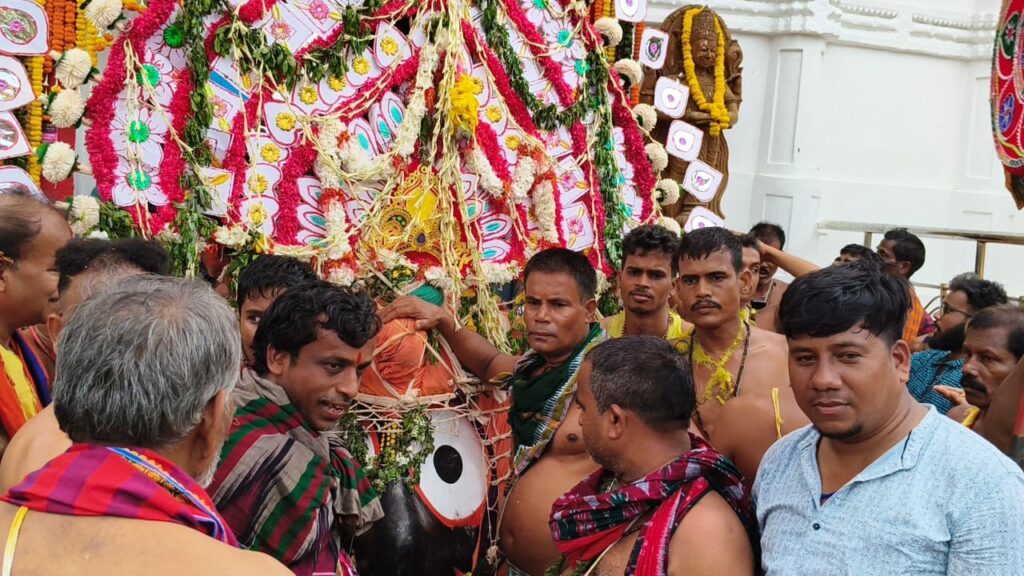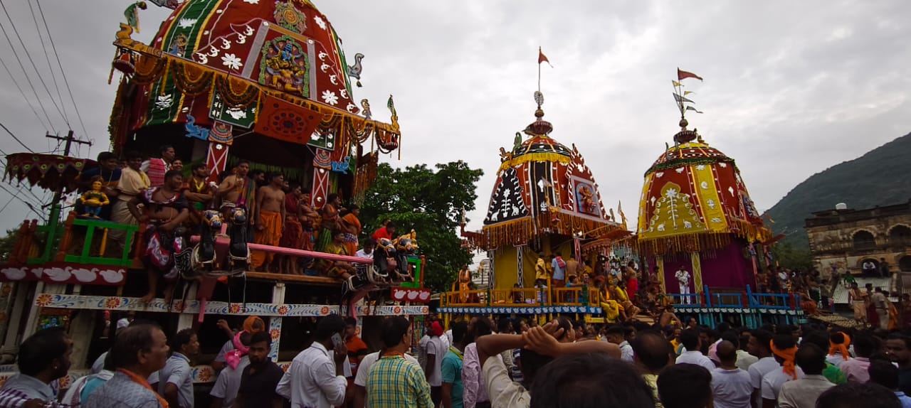 ରଣପୁର, ୨୭/୬: ଦ୍ଵିତୀୟ ଶ୍ରୀକ୍ଷେତ୍ର ଭାବେ ପରିଚିତ ରଣପୁର ଜଗନ୍ନାଥ ମନ୍ଦିରରେ ତିନି ଠାକୁରଙ୍କୁ ନୀତିକାନ୍ତି ଭାବେ ପୂଜାର୍ଚ୍ଚନା ହୋଇଥିଲା | ପ୍ରଥମେ ଅବକାଶ ବଲ୍ଲଭ ନୀତି ସମ୍ପନ୍ନ କରାଯାଇଥିଲା | ଏହା ପରେ ସକାଳ ସାଢେ ୧୦ ବେଳେ ରଥ ପ୍ରତିଷ୍ଠା କରାଯାଇଥିଲା | ଏହା ପରେ ସାଢେ ୧୧ ଟା ବେଳେ ସକାଳ ଧୂପ କରାଯାଇଥିଲା | ଅପରାହ୍ନ ସାଢେ ୨ ଦିଟା ବେଳେ ପହଣ୍ଡି ବିଜେ କରାଯାଇଥିଲା | ଆଖପାଖ ଅଞ୍ଚଳର ପ୍ରାୟ ଲକ୍ଷାଧିକ ଭକ୍ତଙ୍କ ଭିଡ଼ରେ ଘଣ୍ଟ, ହୁଳହୁଳି, ବାଜାରେ ୩ ଠାକୁରଙ୍କୁ ପହଣ୍ଡି କରି ରଥ ଉପରକୁ ଅଣା ଯାଇଥିଲା l