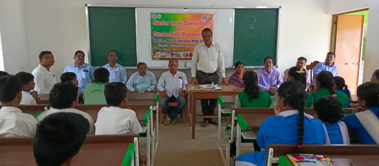 ରଣପୁର, ୨୫/୦୭: ନୟାଗଡ ଜିଲ୍ଲାପାଳଙ୍କ ନିର୍ଦ୍ଦେଶ ଅନୁଯାୟୀ ଜିଲ୍ଲାର ସମସ୍ତ ବିଦ୍ୟାଳୟରେ ଜୁଲାଇ ୨୩ ତାରିଖରେ ସାପ କାମୁଡା ପ୍ରତିରୋଧ ଓ ସଚେତନତା କାର୍ଯ୍ୟକ୍ରମ ଆୟୋଜିତ ହୋଇଥିଲା | ଏଥିରେ ପିଲାମାନଙ୍କ ମଧ୍ୟରେ ପ୍ରବନ୍ଧ, କୁଇଜ ଓ ପୋଷ୍ଟର ପ୍ରସ୍ତୁତି ପ୍ରତିଯୋଗିତା କରାଯାଇଥିଲା | ବିଦ୍ୟାଳୟ ସ୍ତରରେ ପ୍ରତି ବିଭାଗରେ ପ୍ରଥମ ସ୍ଥାନ ହାସଲ ଅଧିକାର କରିଥିବା ପିଲାମାନେ କ୍ଲଷ୍ଟର ସ୍ତରୀୟ ପ୍ରତିଯୋଗିତା ଭାଗ ନେଇଥିଲେ | ଏହି ପ୍ରତିଯୋଗିତାରେ ଷଷ୍ଠ ରୁ ଅଷ୍ଟମ ଶ୍ରେଣୀ ପର୍ଯ୍ୟନ୍ତ କନିଷ୍ଠ ବିଭାଗ ଏବଂ ନବମ ରୁ ଦଶମ ଶ୍ରେଣୀ ପର୍ଯ୍ୟନ୍ତ ବରିଷ୍ଠ ବିଭାଗ ନିଆ ଯାଇଥିଲା |