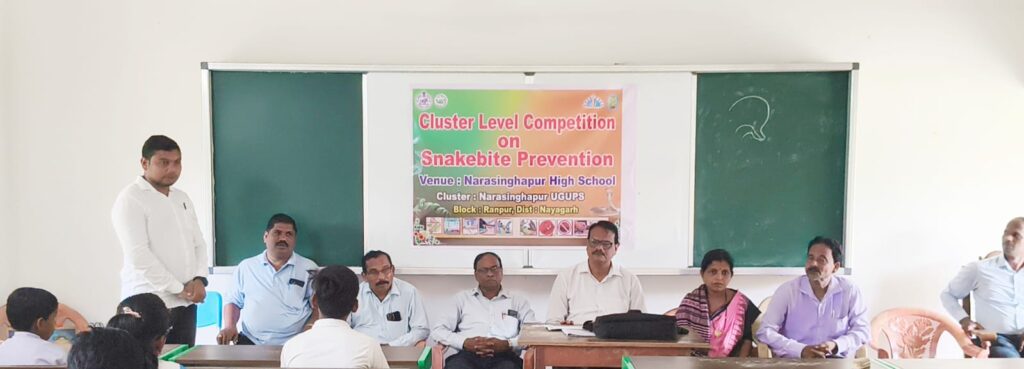 ଏହା ପରେ ବିଭିନ୍ନ ବିଦ୍ୟାଳୟରୁ ଆସିଥିବା ପିଲାମାନଙ୍କ ମଧ୍ୟରେ ପ୍ରବନ୍ଧ, କୁଇଜ ଓ ପୋଷ୍ଟର ପ୍ରସ୍ତୁତି ପ୍ରତିଯୋଗିତା କରାଯାଇଥିଲା | ଏହି କାର୍ଯ୍ୟକ୍ରମର ଉଦଯାପନୀ ସଭାରେ ମୁଖ୍ୟ ଅତିଥି ଭାବେ ବରିଷ୍ଠ ସାମ୍ବାଦିକ ବିଶ୍ୱରଞ୍ଜନ ଆଚାର୍ଯ୍ୟ, ମୁଖ୍ୟ ବକ୍ତା ଭାବେ ସ୍ନେକ ହେଲ୍ପଲାଇନ ସଦସ୍ୟ ଅଜୟ କୁମାର ଦାସ ଓ ରଞ୍ଜନ କୁମାର ଜେନା ଯୋଗ ଦେଇଥିଲେ | ପ୍ରଧାନ ଶିକ୍ଷକ ଗୋଦାବରୀ ନାୟକ ସଭାକାର୍ଯ୍ୟ ପରିଚାଳନା କରିଥିଲେ | ପିଲାମାନେ ପୁଷ୍ପ ଓ ଚନ୍ଦନ ଦେଇ ଅତିଥିମାନଙ୍କୁ ସ୍ୱାଗତ କରିଥିଲେ | ପୁରସ୍କାର ବିତରଣରେ ସୁକାନ୍ତ କୁମାର ବେହେରା ସହଯୋଗ କରିଥିଲେ | ସ୍ନେକ ହେଲ୍ପଲାଇନ ସଦସ୍ୟ ଅଜୟ କୁମାର ଦାସ ଓ ରଞ୍ଜନ କୁମାର ଜେନା ଉପସ୍ଥିତ ଥିବା ଛାତ୍ରଛାତ୍ରୀ ଓ ଅଭିଭାବକମାନଙ୍କୁ ସାପ କାମୁଡା ପ୍ରତିରୋଧ ଓ ସଚେତନତା ସମ୍ବନ୍ଧରେ ବିସ୍ତୃତ ଭାବେ ଆଲୋଚନା କରି ବୁଝାଇଥିଲେ | ପ୍ରତିଯୋଗିତାରେ କୃତିତ୍ୱ ହାସଲ କରିଥିବା ଛାତ୍ରଛାତ୍ରୀ ମାନଙ୍କୁ ଉପସ୍ଥିତ ଅତିଥି ମାନେ ପୁରସ୍କୃତ କରିଥିଲେ |