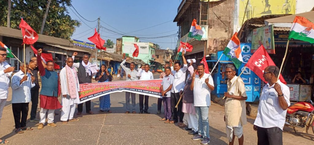 ରଣପୁର, ୧୨/୦୨ : କେନ୍ଦ୍ର ସରକାରଙ୍କ ଦ୍ୱାରା ଗ୍ରହୀତ ୪ଟି ଶ୍ରମ କୋଡ଼କୁ ବାତିଲ କରିବା ଦାବିରେ ଦେଶବ୍ୟାପୀ ଆୟୋଜିତ ୧୨ ଘଣ୍ଟିଆ ସାଧାରଣ ଧର୍ମଘଟକୁ ରଣପୁର ଅଞ୍ଚଳରେ ଦୃଢ଼ ସମର୍ଥନ ମିଳିଛି। ୧୦ଟି କେନ୍ଦ୍ରୀୟ ଟ୍ରେଡ୍‌ ୟୁନିୟନ ଓ ସ୍ୱାଧୀନ ଫେଡେରେସନଙ୍କ ଡାକରାରେ, ବିଭିନ୍ନ ରାଜନୈତିକ ଦଳ ଓ ସଂଯୁକ୍ତ କିଶାନ ମୋର୍ଚ୍ଚାର ସମର୍ଥନରେ ଏହି ଧର୍ମଘଟ ଅନୁଷ୍ଠିତ ହୋଇଥିଲା।
