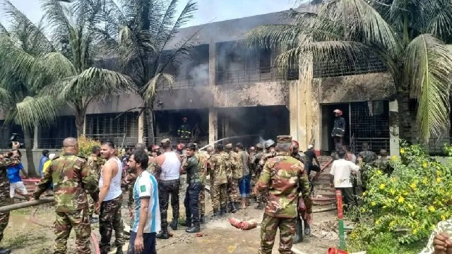 ସୋମବାର ଦ୍ଵିପ୍ରହର ସମୟରେ ବାଂଲାଦେଶ ବାୟୁସେନାର F7 ଟ୍ରେନିଂ ବିମାନ ଦୁର୍ଘଟଣାଗ୍ରସ୍ତ ହୋଇଛି । ଢାକାର ଉତ୍ତରାରେ ଥିବା ଦିଆବାରି ଅଞ୍ଚଳରେ ମାଇଲଷ୍ଟୋନ ସ୍କୁଲ ଆଣ୍ଡ କଲେଜ ପରିସରରେ ବିମାନଟି ଖସିପଡ଼ିଛି । ବିମାନ କଲେଜ ବିଲ୍ଡିଂରେ ଧକ୍କା ହୋଇଛି । ଦୁର୍ଘଟଣା ସମୟରେ କଲେଜରେ ପିଲାମାନେ ଉପସ୍ଥିତ ଥିବା କୁହାଯାଉଛି । ତେଣୁ ମୃତକଙ୍କ ସଂଖ୍ୟା ଆହୁରି ବଢିପାରେ ବୋଲି ଅନୁମାନ କରାଯାଉଛି । ଘଟଣା ସ୍ଥଳରେ ଅଗ୍ନିଶମ ବାହିନୀ ଓ ଉଦ୍ଧାରକାରୀ ଦଳ ପହଞ୍ଚି ଉଦ୍ଧାର କାର୍ଯ୍ୟ ଚଳାଇଛନ୍ତି ।