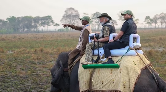 ନୂଆଦିଲ୍ଲୀ: ହାତୀ ପିଠିରେ ବସି ବୁଲିଲେ ପ୍ରଧାନମନ୍ତ୍ରୀ ମୋଦୀ । ଆସାମର କାଜିରଙ୍ଗା ପାର୍କକୁ ପରିଦର୍ଶନ ପାଇଁ ଯାଇଥିବା ବେଳେ ପ୍ରଧାନମନ୍ତ୍ରୀ ମୋଦୀ ହାତୀ ପିଠିରେ ବସି ବୁଲିଛନ୍ତି । ଆସାମକୁ ଏବେ ଦୁଇ ଦିନିଆ ଗସ୍ତରେ ଅଛନ୍ତି ପ୍ରଧାନମନ୍ତ୍ରୀ । ଆଜି ସକାଳୁ ସକାଳୁ ମୋଦୀ କାଜିରଙ୍ଗା ନ୍ୟାସନାଲ ପାର୍କ ଆଣ୍ଡ ଟାଇଗର ରିଜର୍ଭରେ ପହଞ୍ଚିଥିଲେ । କାଜିରଙ୍ଗାକୁ ମୋଦୀଙ୍କ ଏହା ପ୍ରଥମ ଗସ୍ତ । ଏଠାରେ ପହଞ୍ଚିବା ପରେ ମୋଦୀ ହାତୀ ପିଠିରେ ବସି ପାର୍କ ବୁଲିଥିଲେ । ପ୍ରଧାନମନ୍ତ୍ରୀଙ୍କ କାଜିରଙ୍ଗା ପାର୍କର ନିର୍ଦ୍ଦେଶକ ଓ ବରିଷ୍ଠ ଅଧିକାରୀମାନେ ଥିଲେ । ଆଜି ଆସାମରେ ପ୍ରଧାନମନ୍ତ୍ରୀଙ୍କ ବିଭିନ୍ନ କାର୍ୟ୍ୟକ୍ରମ ରହିଛି । ଜୋରହାଟରେ ଅପରାହ୍ନରେ ମୋଦୀ ୧୨୫ ଫୁଟ ଉଚ୍ଚତାର ଷ୍ଟାଚ୍ୟୁ ଅଫ୍ ଭେଲରର ଉନ୍ମୋଚନ କରିବେ । ଏହାସହ ୧୮ ହଜାର କୋଟିର ବିଭିନ୍ନ ପ୍ରକଳ୍ପର ଶିଳାନ୍ୟାସ ଓ ଉଦଘାଟନ କରିବେ ପ୍ରଧାନମନ୍ତ୍ରୀ ମୋଦୀ ।