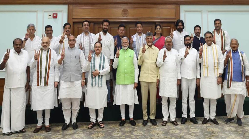 ନୂଆଦିଲ୍ଲୀ: ଲୋକସଭା ନିର୍ବାଚନ ଫଳାଫଳ ପ୍ରକାଶ ପାଇବା ପରେ ଦିଲ୍ଲୀରେ ସରକାର ଗଠନ ପାଇଁ ଏନଡିଏ ବୈଠକ ଶେଷ ହୋଇଛି। ଏହି ସମୟରେ ନୀତୀଶ କୁମାର ଏବଂ ଚନ୍ଦ୍ରବାବୁ ନାଇଡୁଙ୍କ ବିଷୟରେ ବଡ ଖବର ଆସୁଛି। ସୂଚନାନୁସାରେ, ନୀତୀଶ କୁମାର ଏବଂ ଚନ୍ଦ୍ରବାବୁ ନାଇଡୁ ଏହି ବୈଠକରେ ସମର୍ଥନ ପତ୍ର ଦାଖଲ କରିଛନ୍ତି। ଏଭଳି ପରିସ୍ଥିତିରେ ବର୍ତ୍ତମାନ ସମ୍ଭବ ଯେ, ଏନଡିଏ ବୈଠକ ପରେ ସମସ୍ତ ନେତା ସରକାର ଗଠନ ପାଇଁ ଦାବି ଉପସ୍ଥାପନ କରିବେ। ସୂଚନାନୁସାରେ ଆଜି ନିଜେ ଏନଡିଏ ନେତାମାନେ ଏକ ଘଣ୍ଟା ମଧ୍ୟରେ ରାଷ୍ଟ୍ରପତି ଭବନକୁ ଯାଇପାରନ୍ତି। ପ୍ରଧାନମନ୍ତ୍ରୀଙ୍କ ବାସଭବନରେ ଆୟୋଜିତ ଏନଡିଏ ବୈଠକରେ ଅନୁପ୍ରିୟା ପଟେଲ, ମହାରାଷ୍ଟ୍ର ସିଏମ ଏକନାଥ ସିନ୍ଦେ, ପୱନ କଲ୍ୟାଣ, ଜୟନ୍ତ ଚୌଦୁରୀ ମଧ୍ୟ ଉପସ୍ଥିତ ଥିଲେ। ଏହି ଲୋକସଭା ନିର୍ବାଚନରେ ବିଜେପି ସଂଖ୍ୟାଗରିଷ୍ଠତାର ଅତିକ୍ରମ କରିପାରିବ ନାହିଁ। ଏହି କାରଣରୁ ଜେଡିଏର ନୀତୀଶ କୁମାର ଏବଂ ଟିଡିପିର ଏନ ଚନ୍ଦ୍ରବାବୁ ନାଇଡୁ ଏନଡିଏ ସରକାର ଗଠନରେ କିଙ୍ଗମେକରଙ୍କ ଭୂମିକା ଗ୍ରହଣ କରୁଛନ୍ତି। ଏନଡିଏ ବୈଠକରେ ପ୍ରତ୍ୟେକ ଦିଗ ଉପରେ ଆଲୋଚନା ହେଉଛି। ଏହି ଲୋକସଭା ନିର୍ବାଚନରେ ବିଜେପି ୨୪୦ ଟି ଆସନ ଜିତିଛି, ଯାହା ସଂଖ୍ୟାଗରିଷ୍ଠତା ଠାରୁ ୩୨ କମ୍ ଅଟେ। ଟିଡିପି ଏବଂ ଜେଡିୟୁରେ ମୋଟ ୨୮ ଟି ସିଟ୍ ରହିଛି। ବିଜେପିର ଅନ୍ୟ ସହଯୋଗୀମାନଙ୍କ ସହ ମିଶି ଏନଡିଏ ସଂଖ୍ୟାଗରିଷ୍ଠତା ଅତିକ୍ରମ କରିବ।