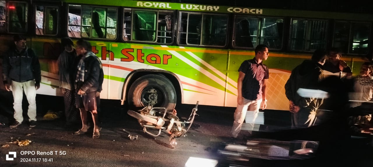Tags: Two bikes collide head-on after overtaking Chaudhuri passenger bus