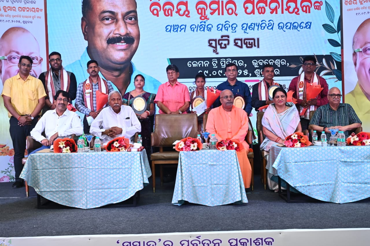 ଭୁବନେଶ୍ୱର: ‘ସମ୍ବାଦ’ର ପୂର୍ବତନ ପ୍ରକାଶକ ବିଜୟ କୁମାର ପଟ୍ଟନାୟକଙ୍କ ପଞ୍ଚମ ବାର୍ଷିକ ପବିତ୍ର ପୂଣ୍ୟତିଥି ଉପଲକ୍ଷେ ଏକ ସ୍ମୃତିସଭା ହୋଟେଲ ଲେମନ ଟ୍ରି, ଭୁବନେଶ୍ୱରଠାରେ ଶୁକ୍ରବାର ଦିନ ଅନୁଷ୍ଠିତ ହୋଇଯାଇଛି। ‘ସମ୍ବାଦ’ର ଅଧ୍ୟକ୍ଷ ତଥା ବିଜୟ କୁମାର ପଟ୍ଟନାୟକ ମେମୋରିଆଲ୍ ଆଣ୍ଡ୍ ଚାରିଟେବୁଲ୍ ଟ୍ରଷ୍ଟର ଅଧ୍ୟକ୍ଷ ସୌମ୍ୟରଞ୍ଜନ ପଟ୍ଟନାୟକଙ୍କ ପୌରୋହିତ୍ୟରେ ଅନୁଷ୍ଠିତ ଏହି ସ୍ମୃତିସଭାରେ ପୂର୍ବତନ ମନ୍ତ୍ରୀ ପଞ୍ଚାନନ କାନୁନ୍ଗୋ, ଚିନ୍ମୟ ମିଶନ ଓଡ଼ିଶା ମୁଖ୍ୟ ସ୍ୱାମୀ ସଦାନନ୍ଦ ସରସ୍ୱତୀ, ‘ନିର୍ଭୟ’ର ସମ୍ପାଦକ ନବୀନ ଦାସ ଏବଂ ‘ପିକକ୍’ର କାର୍ଯ୍ୟନିର୍ବାହୀ ନିର୍ଦ୍ଦେଶିକା ଅନୁରାଧା ମହାନ୍ତି ସମ୍ମାନିତ ଅତିଥି ଭାବେ ଯୋଗ ଦେଇଥିଲେ। ପଞ୍ଚାନନ କାନୁନ୍ଗୋ ତାଙ୍କ ବକ୍ତବ୍ୟରେ କହିଥିଲେ ଯେ ବିଜୟ ପଟ୍ଟନାୟକଙ୍କ ଭଳି ଏକ ସାଙ୍ଗଠନିକ ଦକ୍ଷତା ଥିବା ବ୍ୟକ୍ତିଙ୍କୁ ସମ୍ବାଦ ପାଇଥିଲା। ତାଙ୍କର ସାଙ୍ଗଠନିକ ଦକ୍ଷତା ଅନନ୍ୟ। ଏକ ପ୍ରମୁଖ ସମ୍ବାଦପତ୍ର ‘ସମ୍ବାଦ’ର ସେ ଥିଲେ ପ୍ରଚ୍ଛଦପଟର ନାୟକ। ସମ୍ବାଦର ପ୍ରକାଶନ ଦାୟିତ୍ୱ ଏଭଳି ସୁଚାରୁ ରୂପେ ତୁଲାଇଥିଲେ ଯେ ଯାହା ସମ୍ବାଦକୁ ଆଜି ରାଜ୍ୟର ଏକ ନମ୍ବର ଖବରକାଗଜର ମାନ୍ୟତା ଦେବାରେ ସହାୟକ ହୋଇଛି। ଜୀବନର ଶେଷ ନିଃଶ୍ୱାସ ପର୍ଯ୍ୟନ୍ତ ଦୀର୍ଘ ୩୫ ବର୍ଷ କାଳ ସେ ସମ୍ବାଦର ସେବାରେ ନିଜକୁ ସମର୍ପିତ କରିଥିଲେ। ସମ୍ବାଦର ପ୍ରକାଶକ ପରି ବଡ଼ ପଦବୀରେ ଥାଇ ମଧ୍ୟ ସେ ବେଶ୍ ସରଳ, ପରୋପକାରୀ, ଧର୍ମପରାୟଣ ବ୍ୟକ୍ତି ଥିଲେ।
