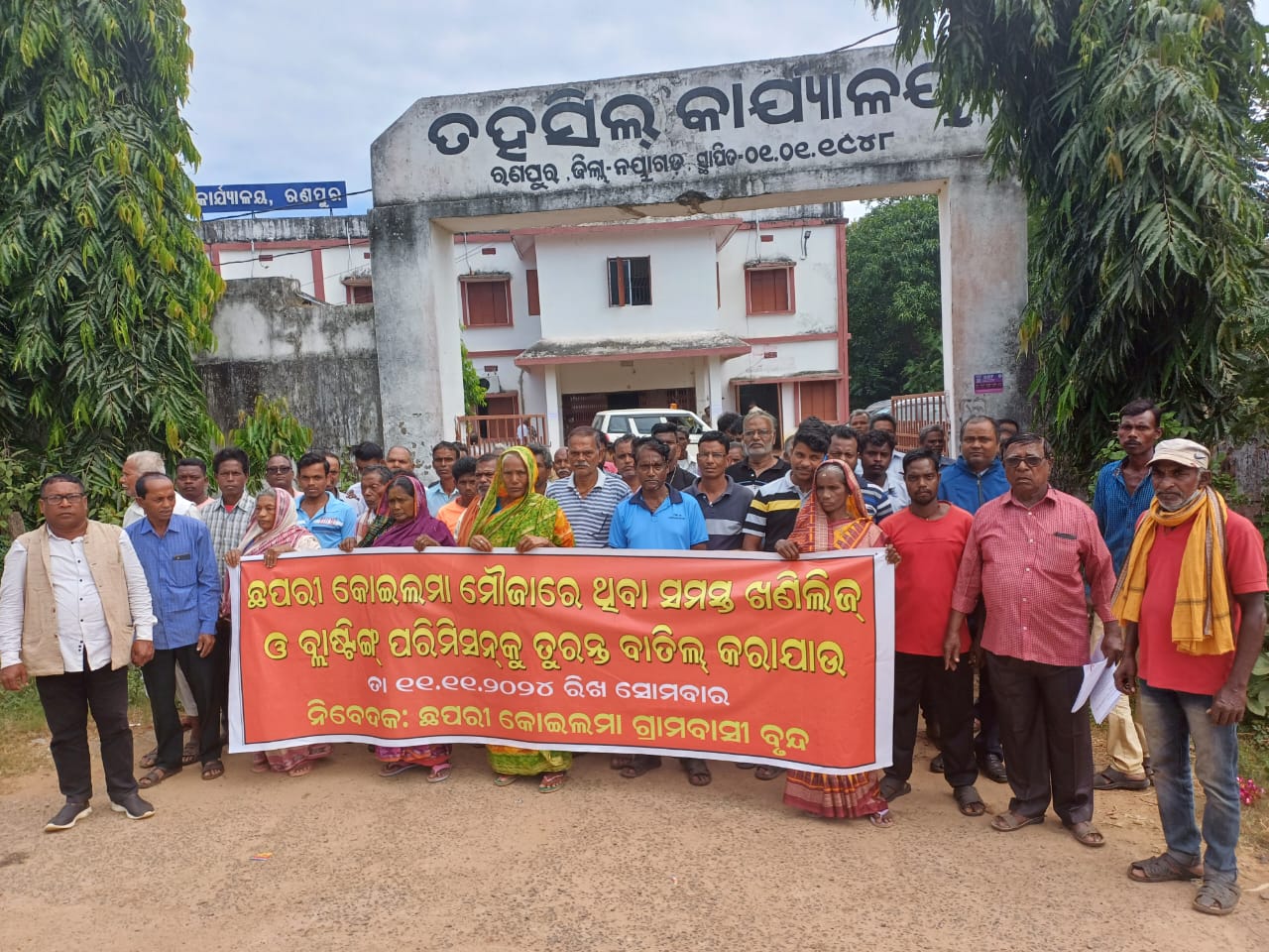 ରଣପୁର (ଭିଓଭି): ରଣପୁର ତହସିଲ ଅଧିନସ୍ଥ ଛପରି କୋଇଲମା ମୌଜା ରେ ଥିବା ପ୍ରାକୃତିକ ଜଙ୍ଗଲ କୁ ନଷ୍ଟ କରି ପ୍ରଶାସନ ବେଆଇନ ଖଣି ନିଲାମ ଦେବାରୁ କୋଇଲମା ଅଞ୍ଚଳରେ ଯକ୍ଷ୍ମା ରୋଗ ବ୍ୟାପିବା,ପକ୍କା ଘର ଗୁଡିକ ଫାଟିବା,ଧ୍ୱନି ପ୍ରଦୂଷଣ ଯୋଗୁଁ ଜଙ୍ଗଲ ଜନ୍ତୁ ଗାଁ ମୁହାଁ ହେବା ଦ୍ଵାରା ଲୋକେ କ୍ଷତି ଗ୍ରସ୍ତ ହେବା ଓ ସାଧାରଣ ଲୋକେ କାମ ହରାଇବା ଭଳି ପରିସ୍ଥିତି ସ୍ରୁଷ୍ଟି ହୋଇଥିବାରୁ ପୂର୍ବରୁ ଖଣି ନିଲାମ କୁ ବିରୋଧ କରି ରାସ୍ତା ଅବରୋଧ ଭଳି ଘଟଣା ଘଟିଥିଲା। ଜିଲ୍ଲା ପ୍ରଶାସନ ଓ ସ୍ଥାନୀୟ ପ୍ରଶାସନ ନିଲାମ ଓ ବ୍ଳାଷ୍ଟିଙ୍ଗ ସମ୍ପୂର୍ଣ୍ଣ ବାତିଲ କରିବାକୁ ପ୍ରତିଶ୍ରୁତି ଦେଇଥିଲା ବେଳେ ବର୍ତ୍ତମାନ ଏକ. ଆନ୍ଧ୍ରପ୍ରଦେଶ କମ୍ପାନୀ କୁ ଦଶ ବର୍ଷ ପାଇଁ ନିଲାମ ଦେବାର ଉଦ୍ୟମ ଜାରି ରଖିବା ସହ ଜନଗଣ ଙ୍କ ସ୍ଵାର୍ଥ କୁ ଆଖି ମୁଜି ଦେଇ ବ୍ଳାଷ୍ଟିଙ୍ଗ କରିବାର ଅନୁମତି ଦେବାକୁ ବସିଛନ୍ତି। ଏହାର ପ୍ରତିବାଦ କରି କୋଇଲମା ର ଗ୍ରାମବାସୀ ଆଜି ରଣପୁର ତହସିଲ ଦାର ଆର୍ଯ୍ୟ କୁମାର ଙ୍କୁ ଭେଟି ଏକ ଚରମ ପତ୍ର ପ୍ରଦାନ କରିଥିଲେ।